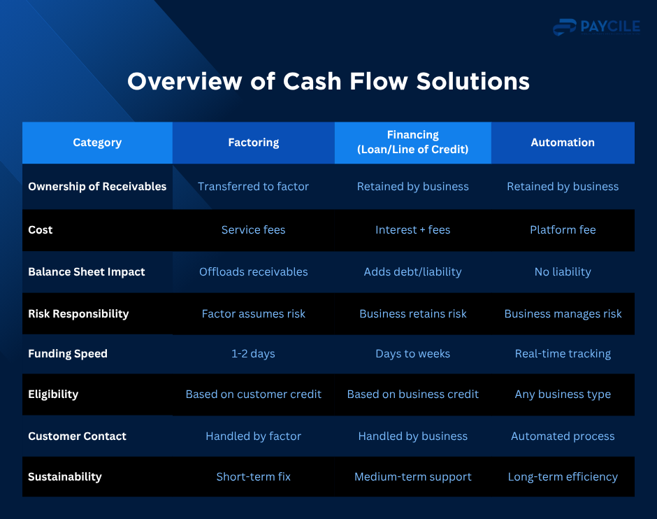 Factoring and financing react to cash flow gaps after they happen. Automation prevents those gaps in the first place.