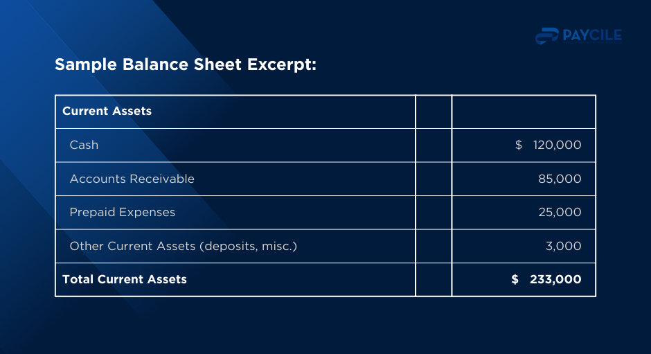 - Grouped under “Other Current Assets.” This is often done when the amounts are smaller or less frequent.